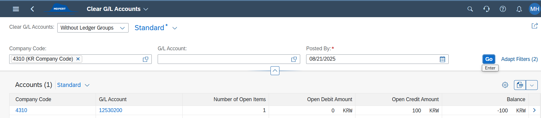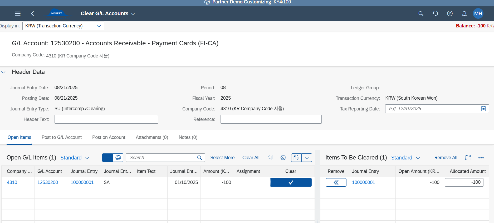 Open Item 계정항목은 반드시 차변이나 대변의 반대계정을 통해서 반제(Clearing)처리가 이루어져야 하며, 해당 계정의 잔액이 '0'이 되어 잔액이 없어질 때까지 Open Item으로 관리 필요