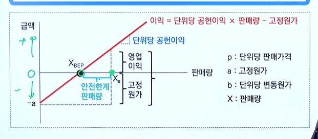 | 세전영업이익= 단위당 공헌이익 x 판매량 - 고정원가 | |