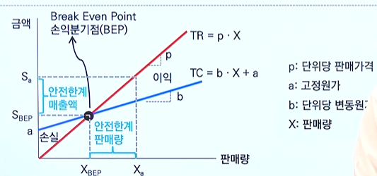 - 안전한계 매출액 = 실제매출액 - 손익분기점 매출액
