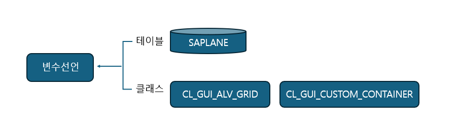 | 시작 구문 | START-OF-SELECTION | PROCESS BEFORE OUTPUT(PBO) | 화면에 결과를 나타내기 전에 할일 정의 |