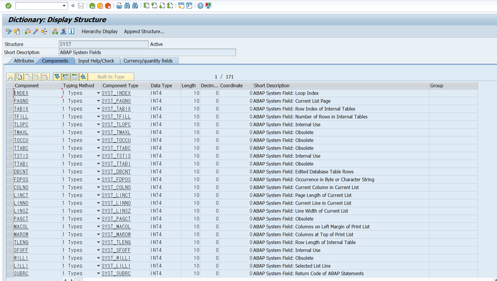 ▶조회방법 :사용할 수 있는 시스템 필드는 'SYST'라는 구조체를 조회하면 할 수 있음