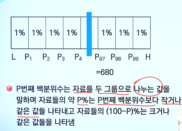 - 자료를 크기 순서로 정리하여 백등분 하였을 때 각 등분점에 위치하는 자료