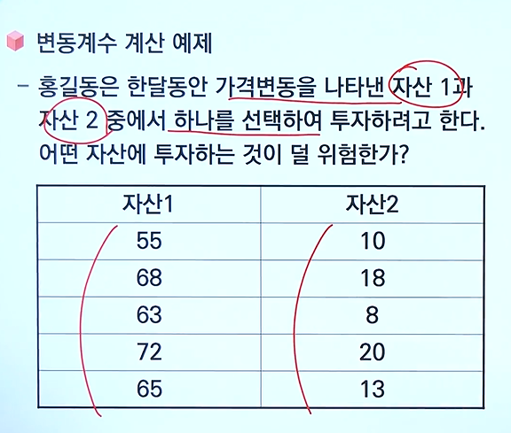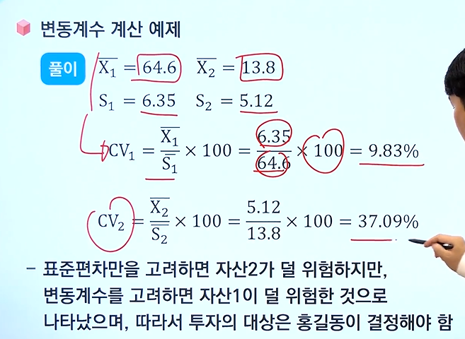- 변동 계수 공식 = 표준편차/평균