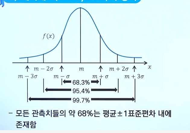 - 자료의 분포가 평균을 중심으로 좌우 대칭을이루어 종모양을 중심으로 이루어진다는 경험법칙이 성립함