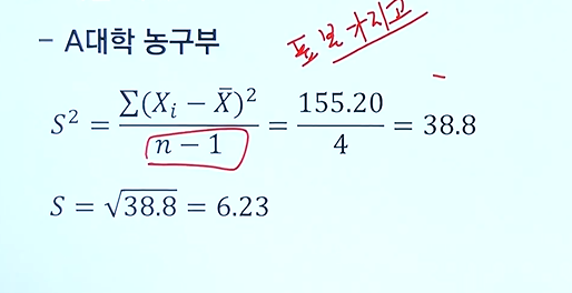 - 분산은 각 자료에 대한 편차제곱으로 구하기 때문에 원자료의 단위보다 큰 단위로표시하게 됨