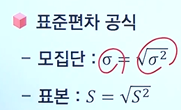 - 표준편차는 모집단이냐 표본이냐에 따라서 모 표준편차와 표본표준편차로 구분함