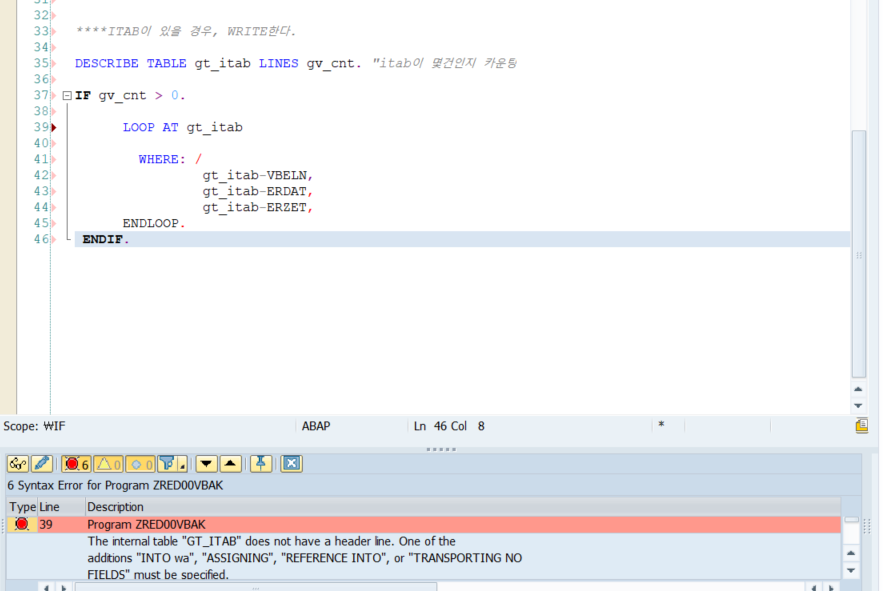 인터널 테이블을 가지고 루프를 돌릴때 Dictionary를 복사한 또 다른 테이블을 만들어서 루프를 돌릴때 TO 새로운 테이블로 명시하거나