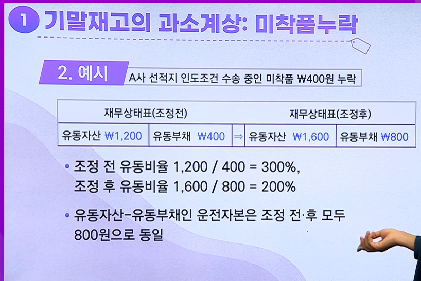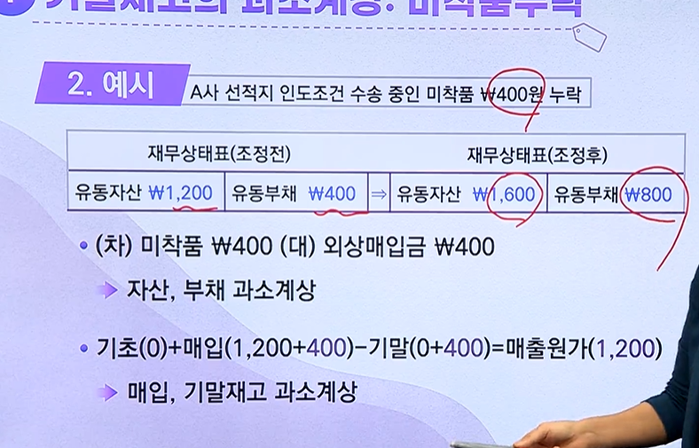 - 재무상태표 : 재고자산, 매입채무 과소 계상