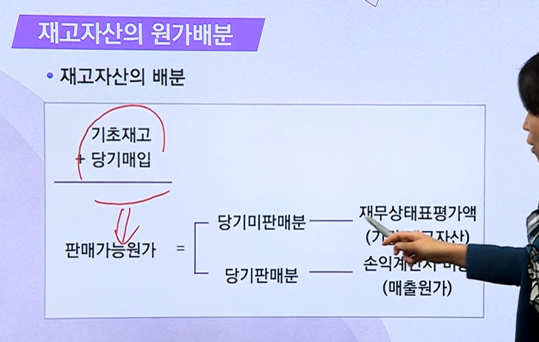 - 판매가능원가를 매출원가와 기말재고에 배분