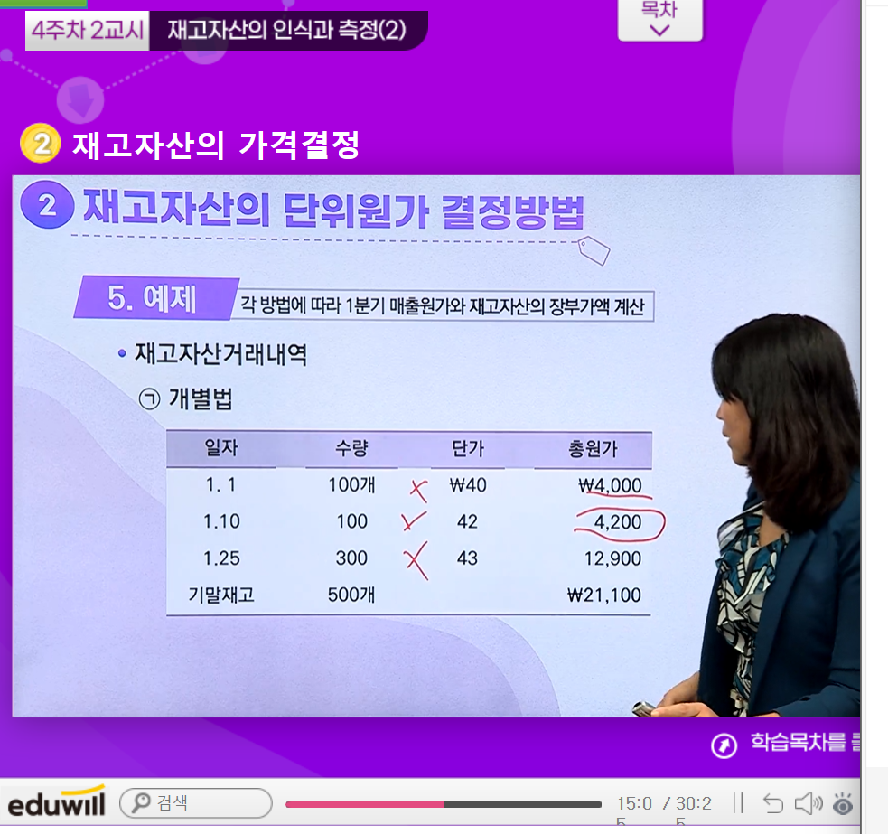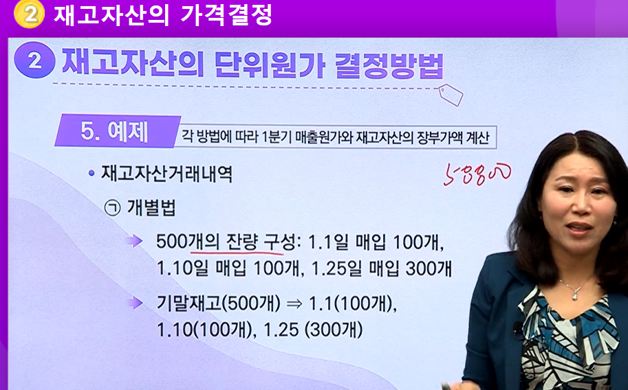 - 소량고가 품목(귀금속등) 재고자산 별로 원가를 식별하여 적용할 수 있는 경우 적절함