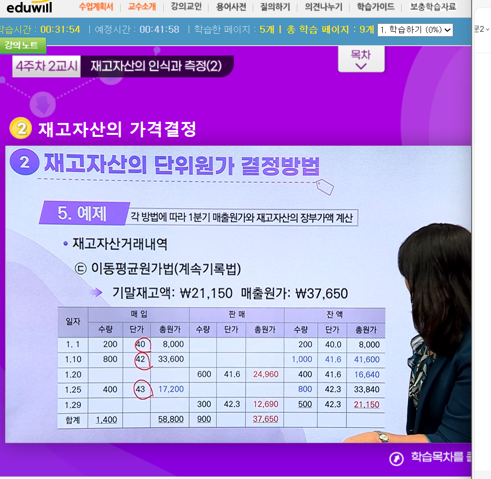2-1) 계속 기록법(이동평균원가법), 2-2)실질재고조사법(가중평균법)