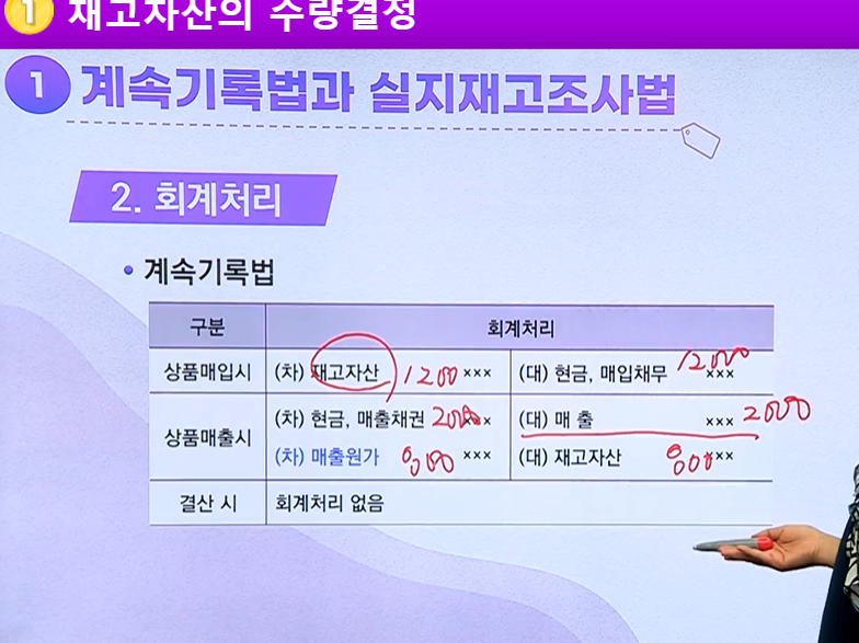>> 구입과 판매 시 재고자산 수량과 금액을 직접 기록