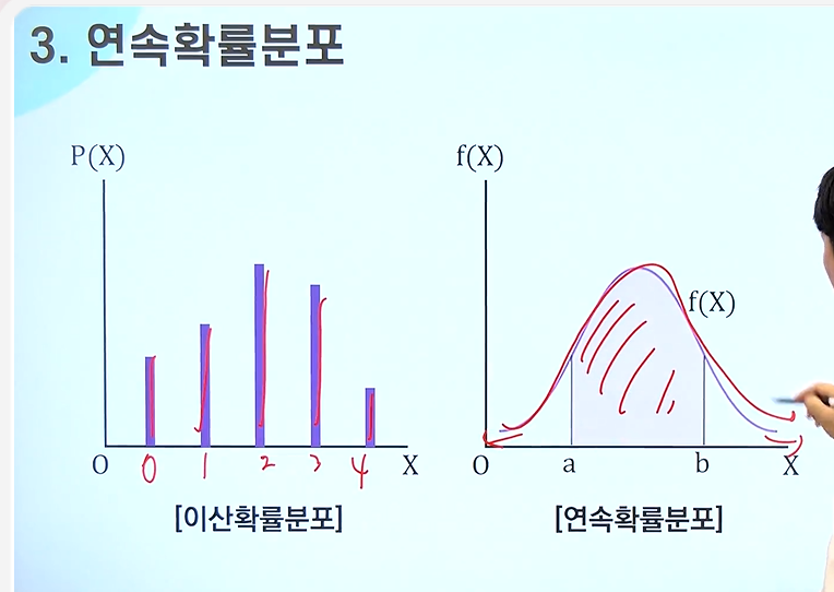 - 연속확률변수의 확률은 특정범위에 대해서 구하게 됨