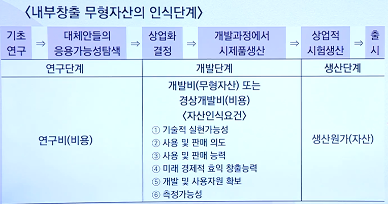 - 연구단계와 개발단계를 구분할 수 없는 연구개발지출은 모두 연구단계에서 발생한 것으로 간주, 비용인식