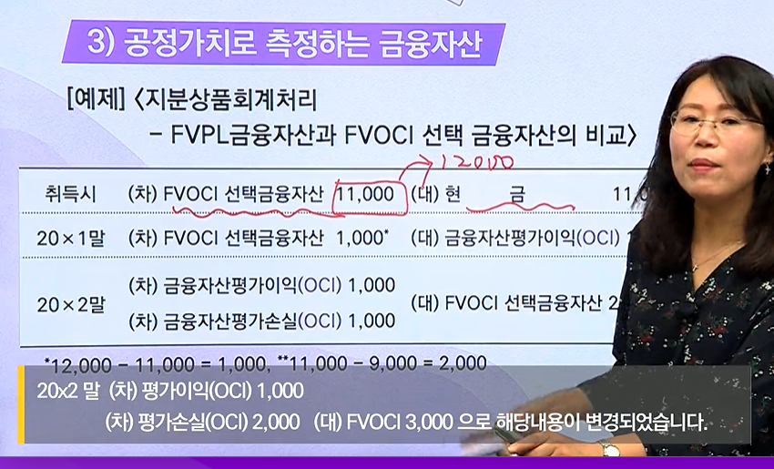 - 전체평가손실 2,000원 중 전기이월 기타포괄이익 1,000원을 우선 감소시키고 초과액 1,000원을 기타포괄손실로 인식