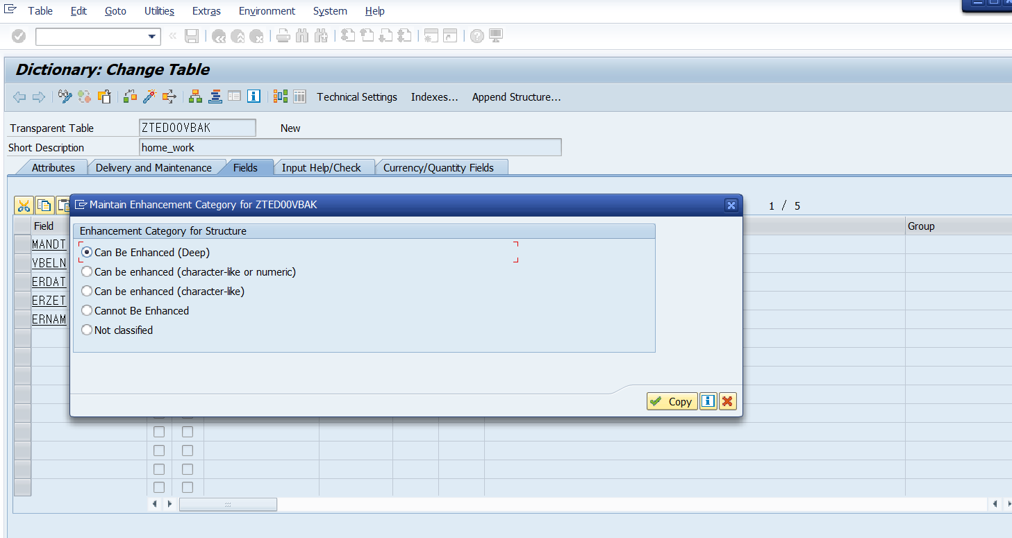 해결 방법 관련 출처:[SAP/ABAP] 테이블, 구조 생성 시 warning (Enhancement category for table missing) (tistory.com)