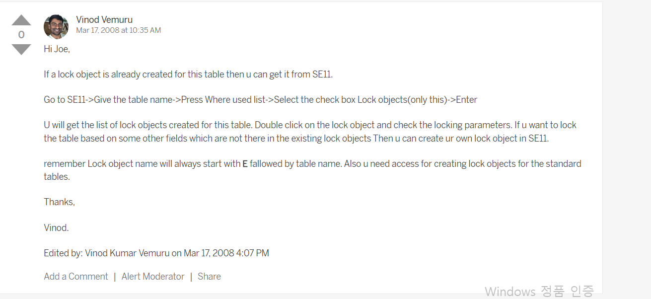 lock object는 t-code : se11에서 생성/변경/조회할 수 있는 abap dictionary로서, 여러 프로그램이 같은 데이터에 접근할 수 있도록 동기화 하는 역할을 담당한다.