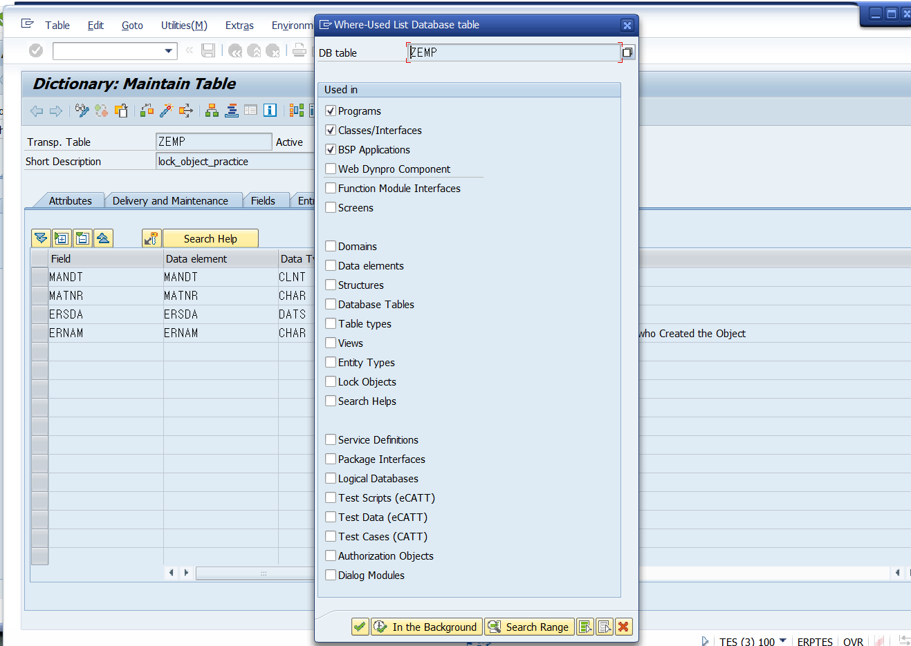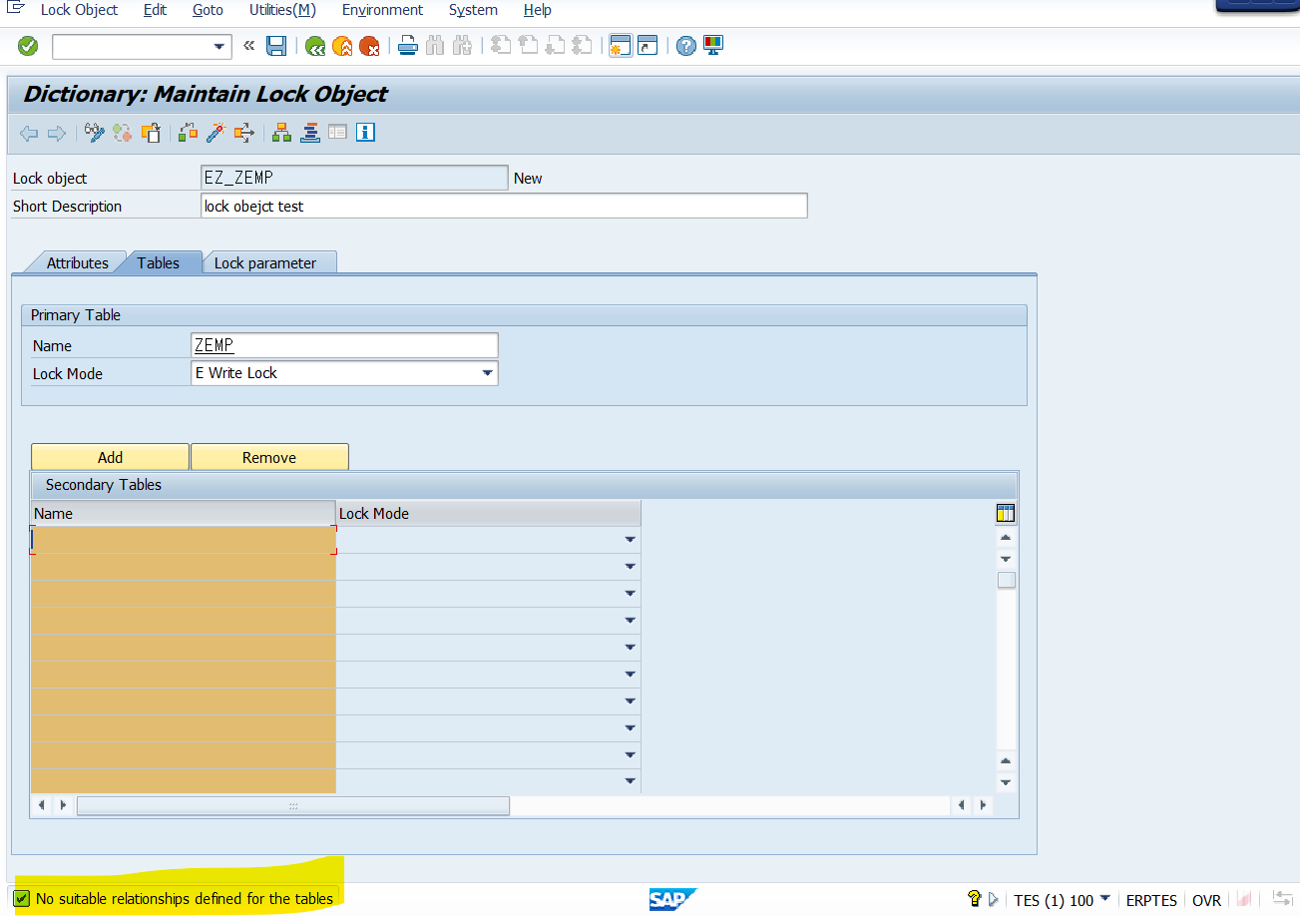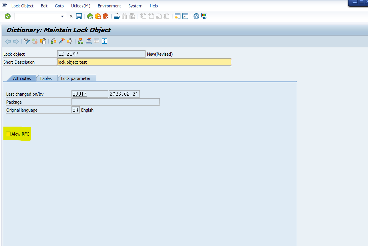 lock을 설정하려면 abap dictionary에 lock object가 생성되어 있어야 한다.
