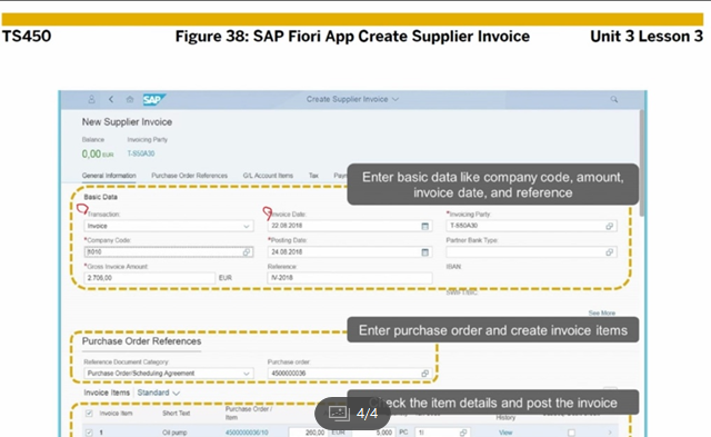 Identifying the SAP Fiori User ExperienceWorking with SAP GUIDeclineating Procurement ProcessIdentifying the organizational units procurementCreating Purchase OrderPosting Goods ReceiptEntering an invoiceMaintaining Material Master DataMaintaining Purchasing Info RecordAnalyzing Material ValuationComparing Procurment Processes for Stock and consumptioncreating purchase requisitioncreating purchase order with reference to a puchase requisitionentering valuzted and non-valuated goods receiptsmaintaining purchasing contractcreating a purchase requisition with source retermination
