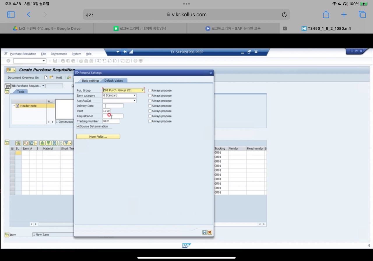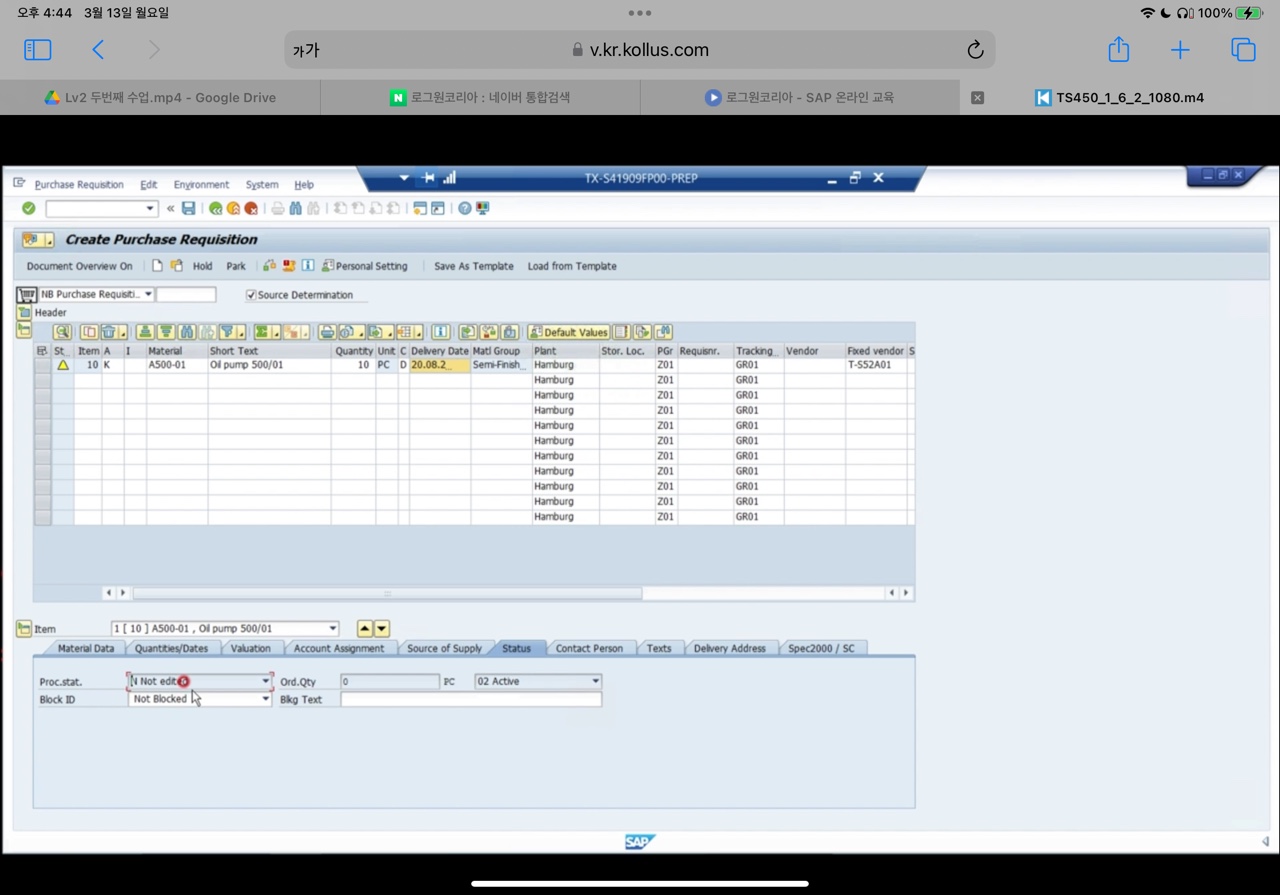 - advanced transaction ME51N(PR생성) for purchase requisition
