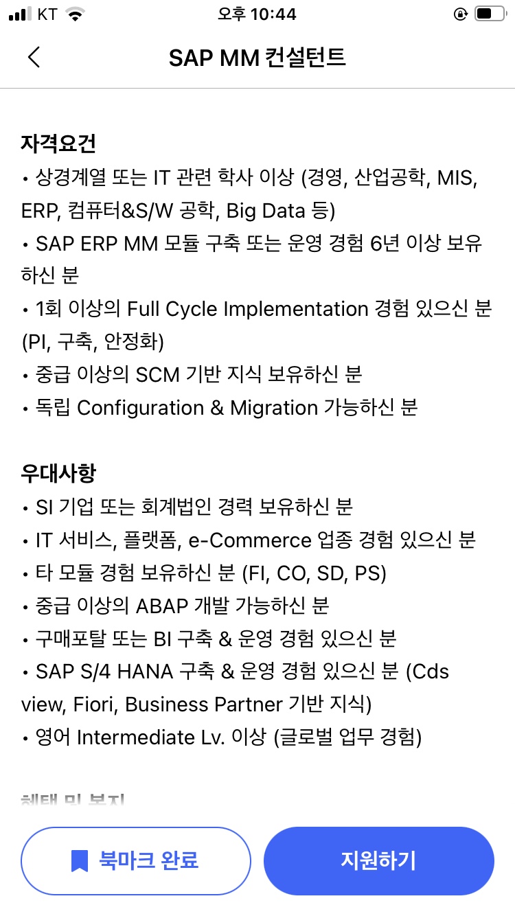 - SAP ERP MM모듈 구축 혹은 운영 경험 & 1회 이상의 Full Cycle Implementation