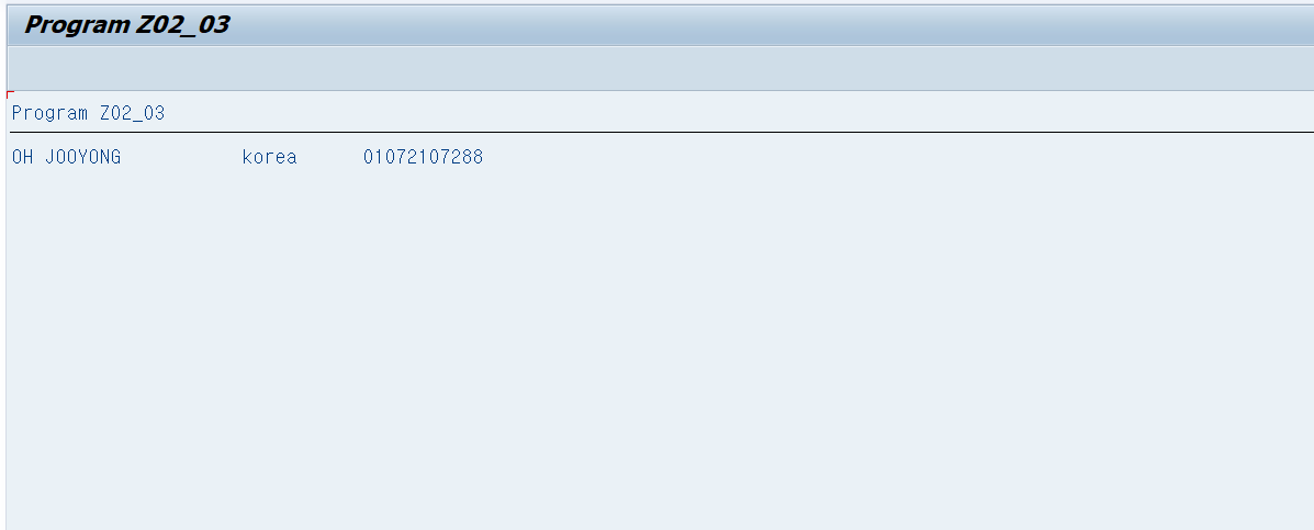 WRITE: gs_info-name, gs_info-country, gs_info-phone.
