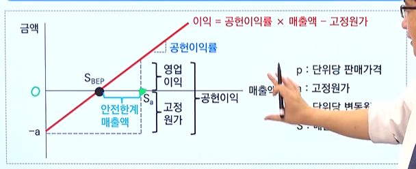 = 실제 판매량 / 안전한계 판매량 = 실제 매출액 / 안전한계 매출액- 영업이익/공헌이익 = 안전한계율