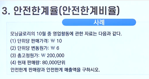 (2) 안전한계 판매량 : 실제 판매량- 손익분기점 판매량